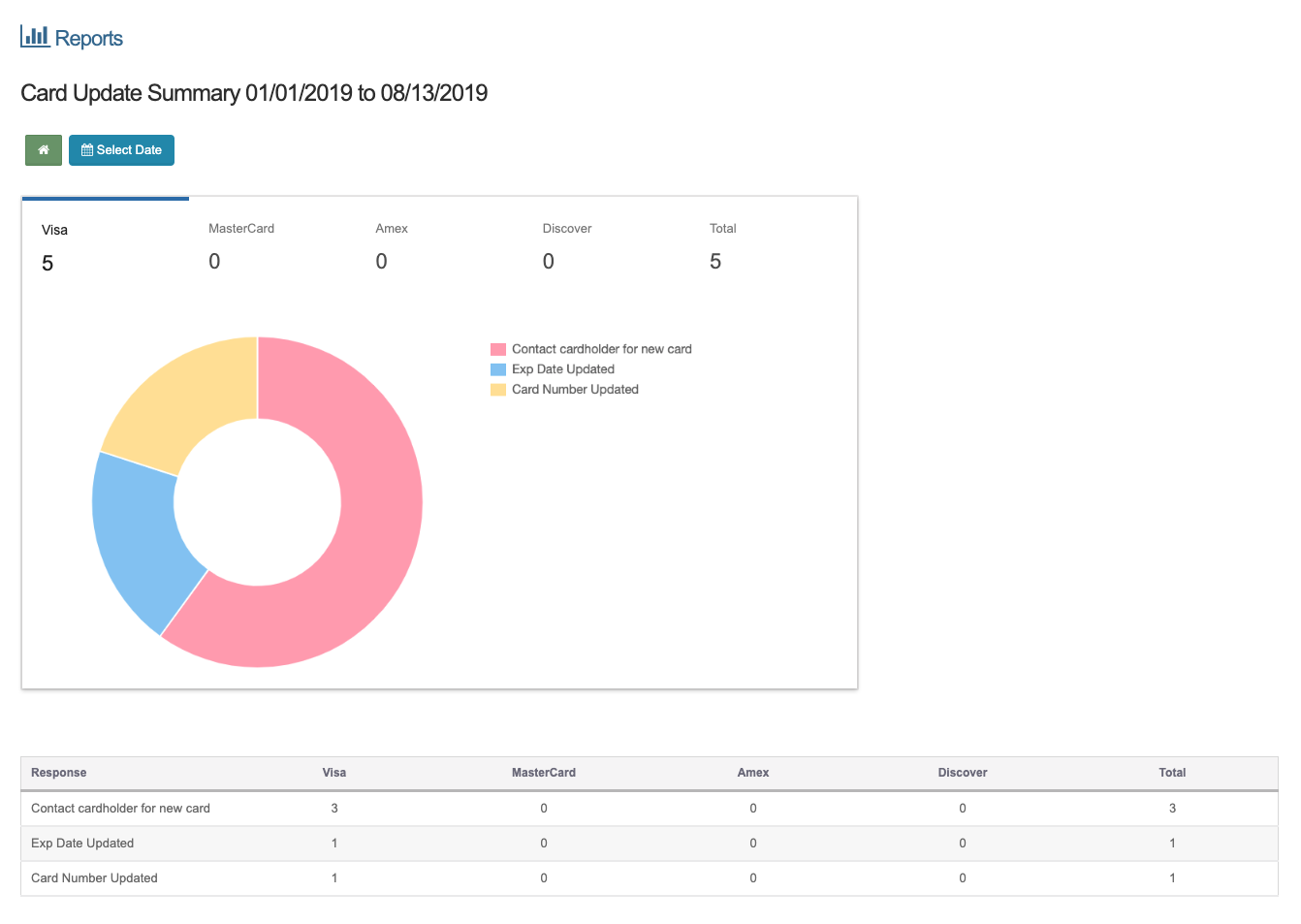 This report will only be available your account if you have Card Updater enabled with a compatible processor. Please contact your Merchant Service Provider for any questions.